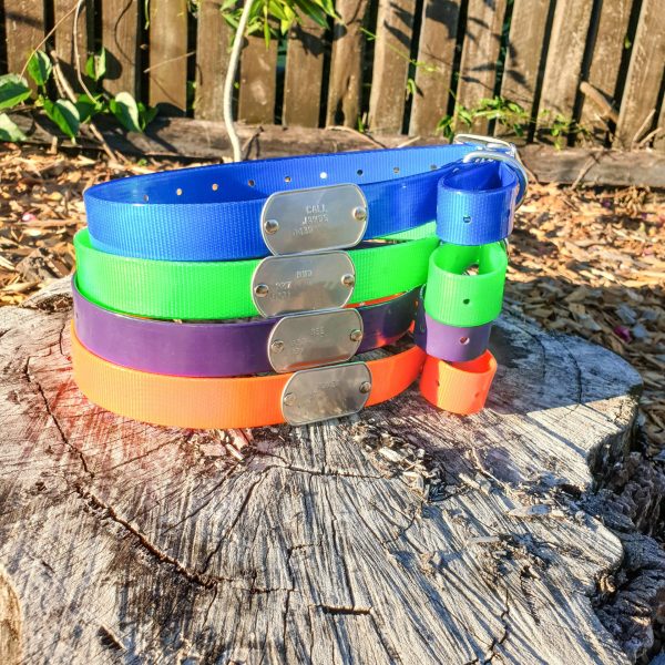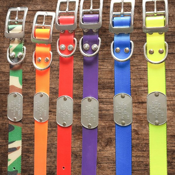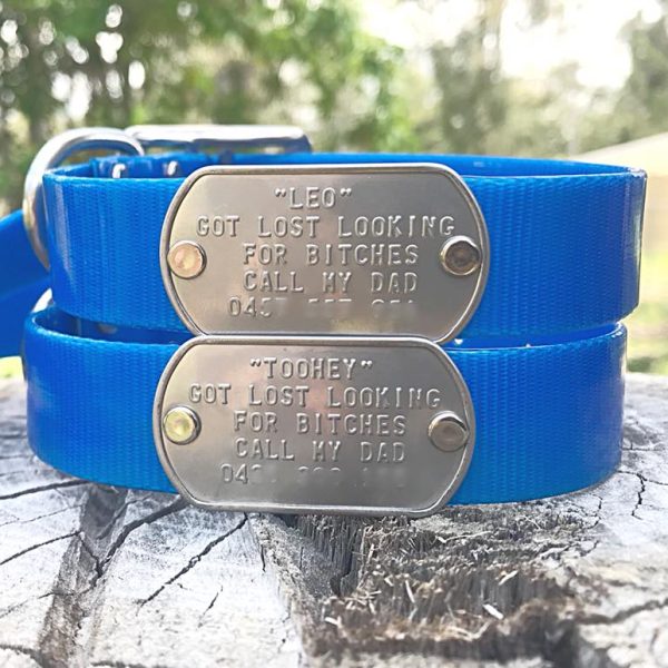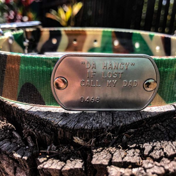 Our fully custom metal tags come attached to your collar but they are also easy to attach to other collars and items. With strong and secure attachment they are perfect for working dogs as well as pets.