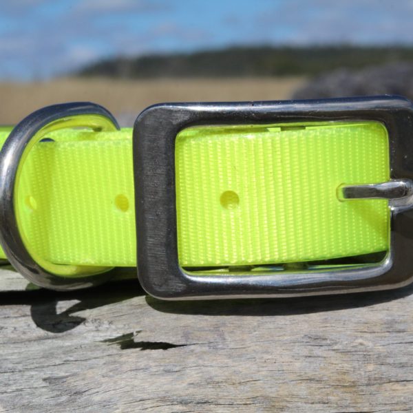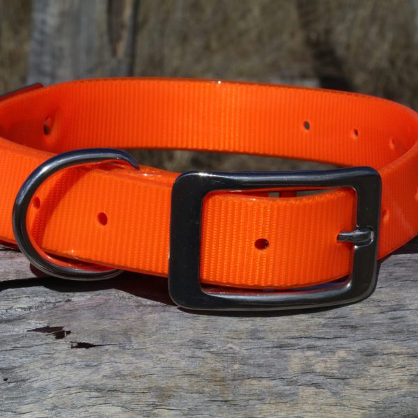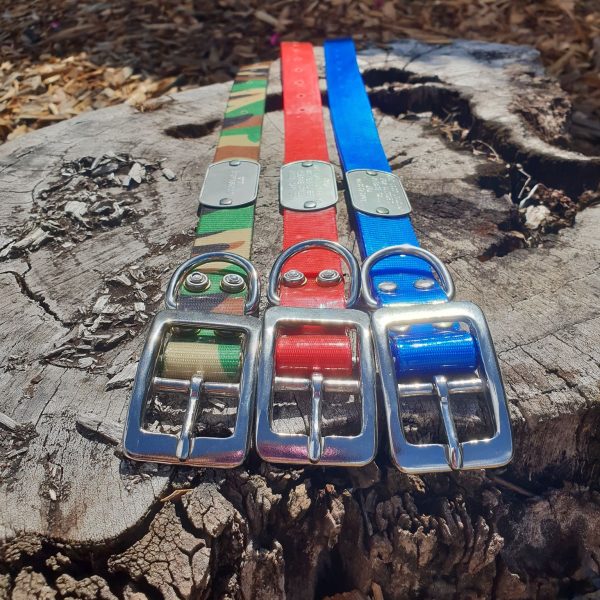 Our collars have Stainless Steel buckles and Stainless Steel welded D rings. We strive to supply the best quality and the best price possible. These collars are super strong, we have tested them all on our working dogs.