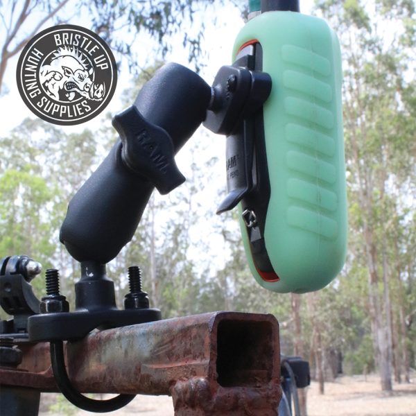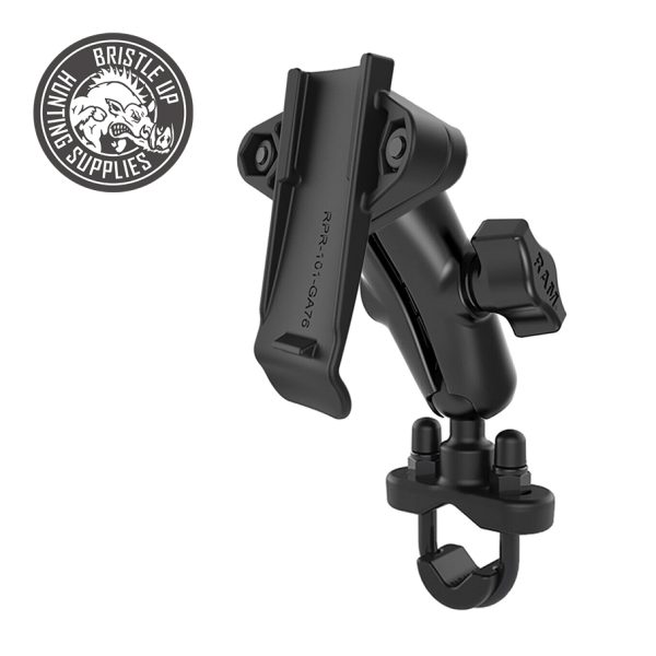 Consists of a zinc coated u-bolt base, double socket standard arm and the Garmin Slide clip. Included in this package is hardware that will accommodate rails from 0.50″ to 1.25″ in diameter. The base includes black cover caps to be placed over the exposed ends of the u-bolt. The mount is designed with a RAM 1″ diameter patented rubber ball and socket system that has adjustment points at both ends of the double socket arm; this allowing for almost infinite adjustment and perfect viewing angles. The included composite rail adapter can narrow the rail to a minimum width of 0.5″. This mount easily clips into the integrated spine connection on a wide range of Garmin GPS and satellite communication handheld devices. SUITS