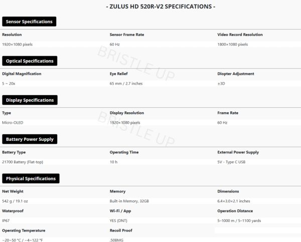The ZULUS HD ZHD520R V2 is the ultimate evolution in digital precision optics, engineered for serious shooters who demand uncompromising clarity and reliability across any light condition. Whether you’re tracking in broad daylight, at twilight, or in total darkness, the V2’s advanced STARVIS 2 sensor, enhanced by ED glass and AI-powered image algorithms, delivers unparalleled detail with a crisp 1920×1080 resolution and a smooth 60Hz frame rate. It’s a leap beyond its predecessor, offering performance that rivals premium daytime scopes while unveiling the night in extraordinary clarity.