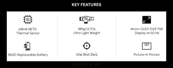 - Standalone Imager: Featuring a 1024×768 micro-OLED display and rapid-adjust eyepiece, it provides a natural viewing experience with a generous 2.5” (65mm) eye relief and a forgiving eye box, perfect for long sessions in the field.