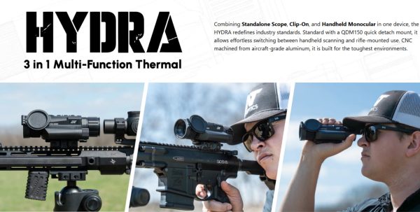 - Clip-On Device: Compatible with LPVOs (recommended to use in the lower half of the magnification range) and low magnification prism optics, the Hydra easily converts your daytime optic into a powerful thermal imager.