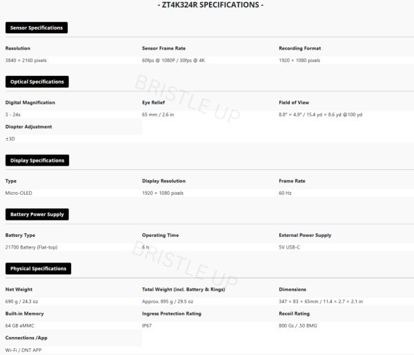 DNT Zulus 4k 3-24x Digital Day & Night Vision Rifle Scope with