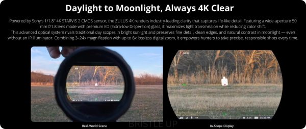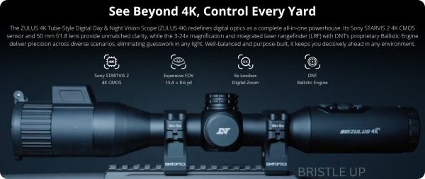 The DNT Optics ZULUS 4K 3–24x Digital Day and Night Vision Rifle Scope is a game-changer for modern shooters, combining Sony STARVIS 2 4K clarity, a fast 50 mm f/1.8 lens, and a powerful 1,300-yard laser rangefinder in one streamlined optic. With an intelligent DNT Ballistic Engine, wide field of view, and smooth 60 fps performance, it delivers uncompromising precision from bright daylight through to deep night, keeping you confidently ahead in any environment.