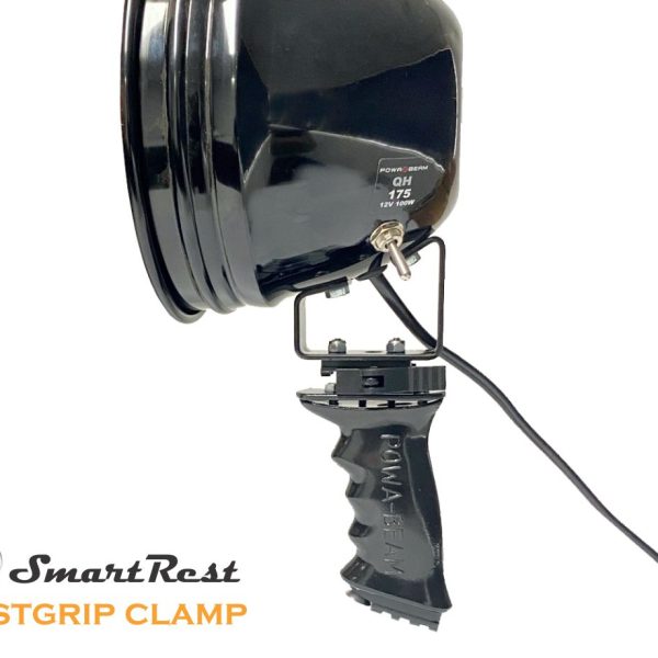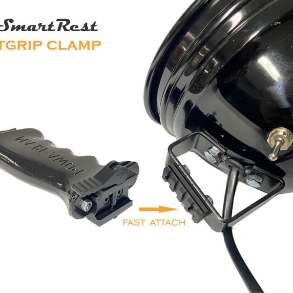 The Fast Grip Handle is a pistol grip with quick release clamp on the top and rail on the base. The phone attachment is mounted to the side of the handle. It can also adapt to all SmartRest Quick Release Light Mount items.