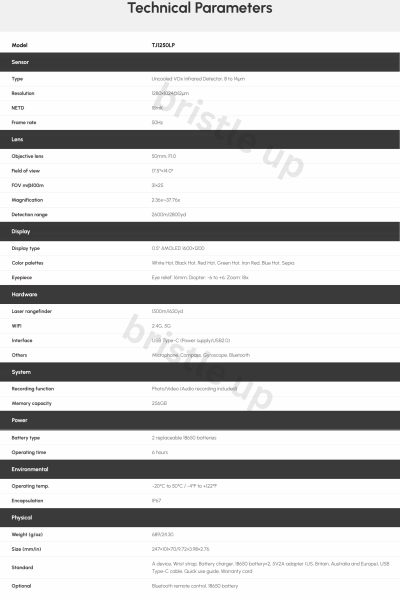 TJ LRF Pro Series has fully upgraded its hardware configuration and software functions, bringing it to new heights in picture clarity, observation comfort, and intelligent operation. It is equipped with a 12μm high-sensitivity infrared detector, making your targets in the dark clearly visible and lifelike. 0.5″ ultra-large AMOLED display presents you with a stunning visual effect like a home theater. Built-in 1500m laser rangefinder, triggered with one button, makes your adventure more secure and smooth.