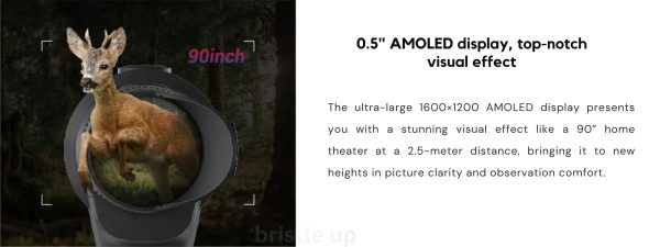It is equipped with a 12μm high-sensitivity infrared detector, making your targets in the dark clearly visible and lifelike. The 0.5″ ultra-large AMOLED display presents you with a stunning visual effect like a home theatre. A built-in 1500m laser rangefinder, triggered with one button, makes your adventure more secure and smooth.