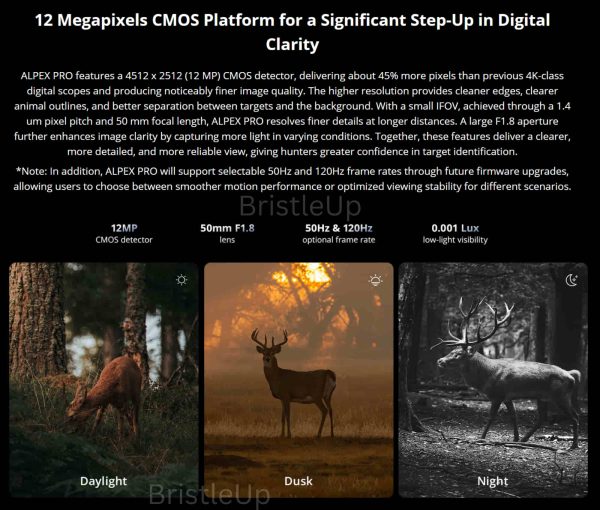 The upgraded 12-megapixel CMOS detector delivers approximately 45% more resolution than traditional 4K-class digital scopes, producing noticeably superior image quality with cleaner target definition, enhanced edge clarity, and improved target-to-background separation. This advanced sensor technology ensures optimal performance whether you’re hunting during legal shooting hours or conducting authorised pest control activities in low-light conditions across Australian properties.