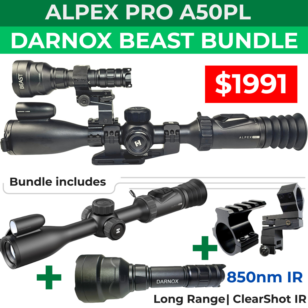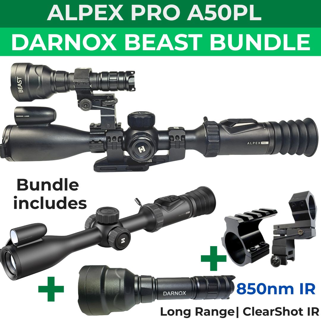 Hikmicro Alpex Pro A50PL BEAST Bundle + IR Torch + Torch Mount – Night Vision Scope