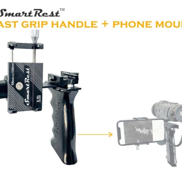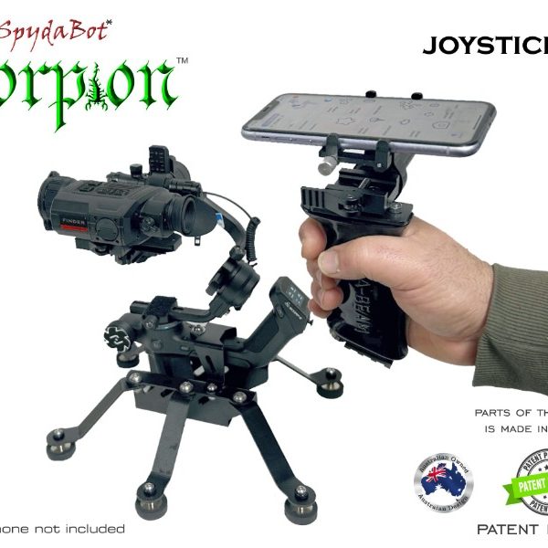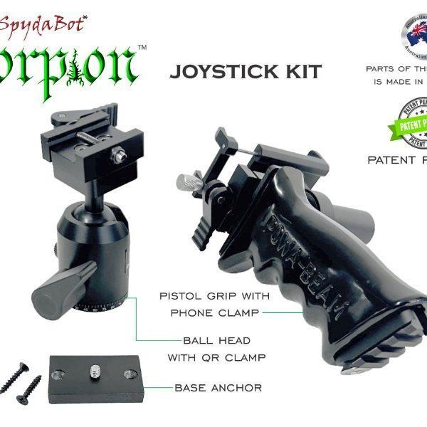 The Joystick Kit for the SpydaBot “Scorpion” is used to create a joy stick controller for the SpydaBot Scorpion. It consists of a pistol grip, a phone attachment and a ball head and base which is mounted (screwed) to the console of a vehicle. It can also adapt to all SmartRest Quick Release Light Mount items and allows an attachment of a thermal camera on to the handle itself to double up as a hand held thermal and phone holder device (see images for reference). Note: Android phones have a different gyro orientation which means the phone will need to be upright to represent a horizontal position in the Gimbal – Apple’s horizontal position is sync’d as horizontal to the Gimbal.