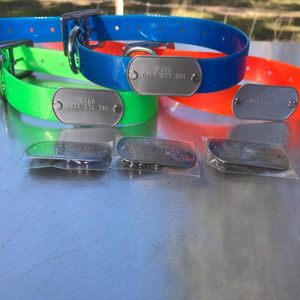 Metal Dog Tags (Attach to collars, chestplates and trackers)