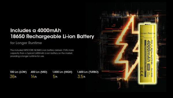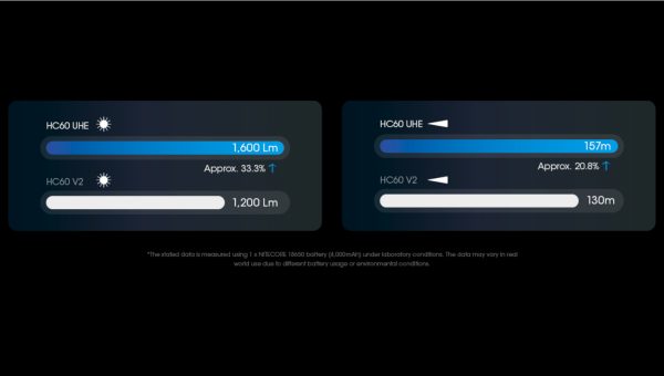 The HC60 UHE includes a high-capacity 4,000mAh 18650 Li-ion battery, providing up to 200 hours of runtime. With USB-C fast charging, it fully recharges in just two hours, making it an ideal option for extended outdoor use.