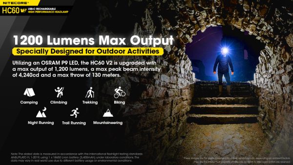 The Nitecore HC60W V2 is a high performance headlamp that takes everything we love about the original HC60 and makes it even better. The HC60W V2 produces a powerful max output of 1,200 lumens and 130m beam distance. This is a very versatile headlamp designed for camping, climbing, running, trekking and more. The HC60W V2 utilises an OSRAM P9 LED and offers wide floodlight illumination of up to 100°. This headlamp offers 5 brightness levels as well as a strobe, beacon and SOS mode so its perfect for a variety of situations. The HC60W V2 runs off an included 3400mAh 18650 Li-ion battery and is rechargeable via the USB-C port for fast charging. The elastic and breathable headband that comes with the HC60W V2 makes for a comfortable and secure fit and the headlamp is 180° adjustable so you can get the light in the exact position you need it. Other features of the HC60W V2 include the power indicator, memory function, IPX7 waterproof rating and durable build quality. 3400mAh 18650 rechargeable Li-ion battery included.