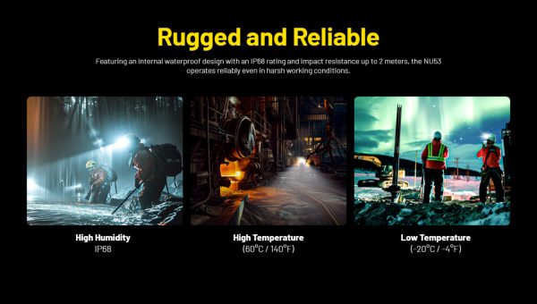 Built to endure tough environments, the NU53 is IP68 waterproof and impact-resistant up to 2 meters, making it reliable in rain, dust, and extreme weather.