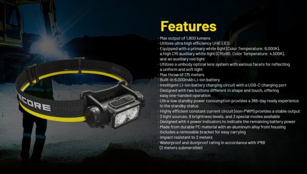 With an output of up to 1800 lumens, the NU53 provides unmatched illumination, ensuring you have clear visibility even in the darkest environments.