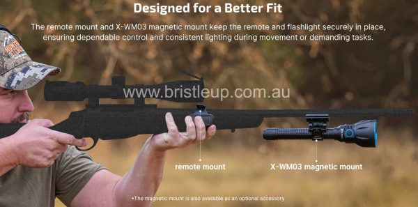 The Javelot Turbo 2 is a full-size, long-range flashlight designed for hunting or search-and-rescue applications. At maximum output, it can throw a focused beam of 1,800 lumens up to 1,500 metres. Furthermore, the light can pair with a wireless remote, allowing control from 8 metres away. The magnetic dock on the flashlight secures the remote and charges it simultaneously. Powered by a 5,000 mAh battery pack, it offers up to 272 hours of runtime and can be easily replaced by unscrewing the tail cap. With both USB-C and magnetic charging capabilities, the flashlight provides exceptional charging flexibility. It can also be mounted to a setup using the X-WM03 magnetic mount, transforming it into a superlong-range WML. Whether you’re hunting, searching for a lost person, or checking the backyard, the Javelot Turbo 2 is exactly what you need.