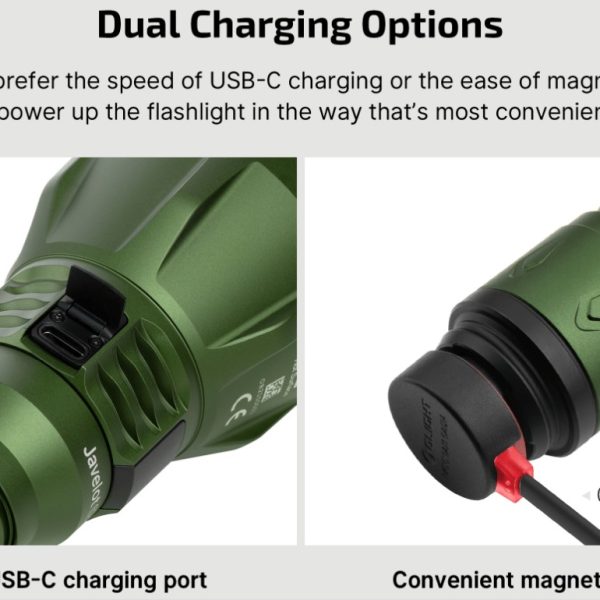 - Two Charging Methods: The flashlight features USB-C and magnetic charging capabilities, ensuring maximum charging convenience and flexibility.