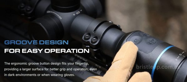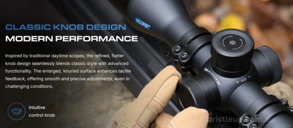 - Integrated 1000m laser rangefinder, ballistic calculator, gyroscope, and exposure compensation