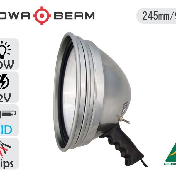Powa Beam’s biggest and brightest hand held Spotlight is the 9″ 70W HID, provided a long tight white beam designed for distance! These spotlights are fitted with adjustable-focused reflector that makes focusing your beam so much easier. You take the case off, unscrew the lock ring, and spin your reflector until you see the beam you want. Once you have that beam set, simply screw the lock ring back on, put it back in the case and you’re set to go. No longer will you need to remove the glass and risk damaging your reflector.