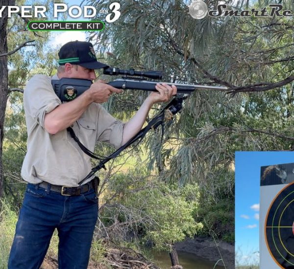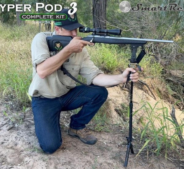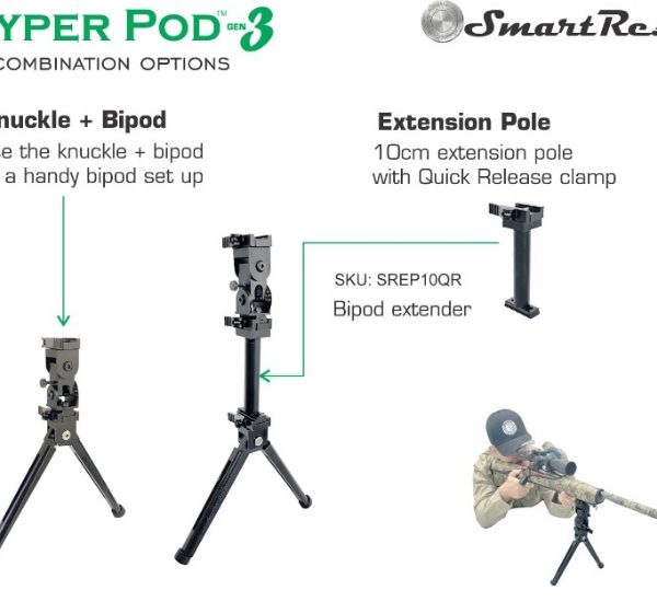The Hyper Pod 3 complete kit is a monopod trigger pole, with a quick release knuckle attachment which attaches to the pic rail on the fore end of a rifle stock and a bipod on the base.