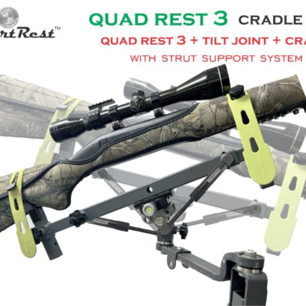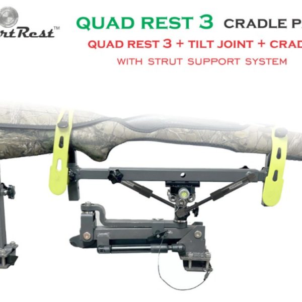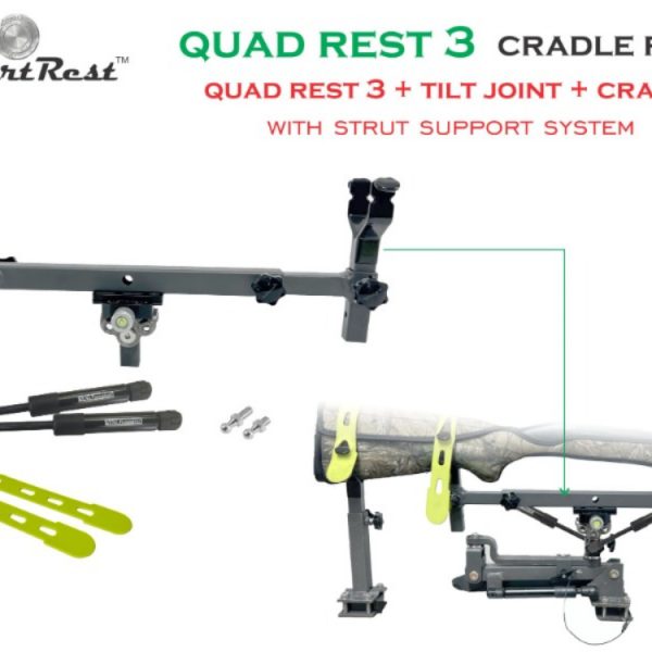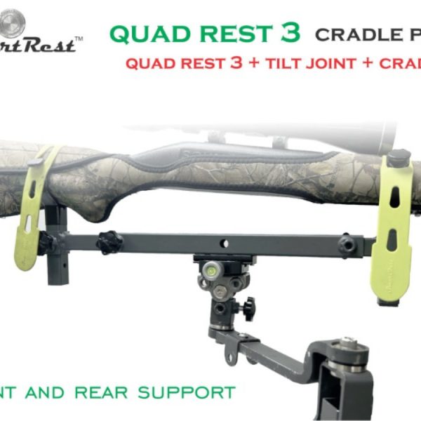 The Quad Rest 3 Cradle Pack is a steel framed Gun Rest and Cradle system that stores a firearm in a safe position while traveling and doubles up as a stable rifle support for excellent accuracy while taking a shot. It includes a front and rear supporting cradle.