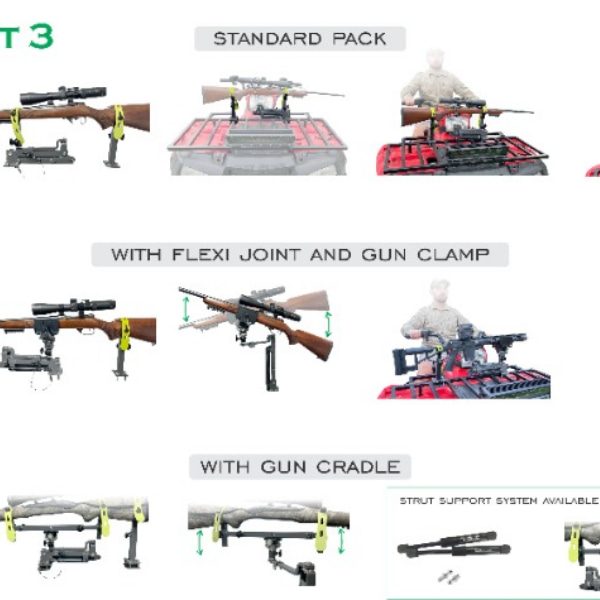 This Gun Rest model is the third model released, which is also known as Quad Rest 3 and or the Roll Bar Rest 3, which are part of the Off Road Gun Rest Series by SmartRest – the Australian Gun Rest Brand. This model fits on Quad Bikes, UTVs, and Utes/pickups.