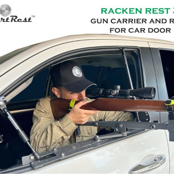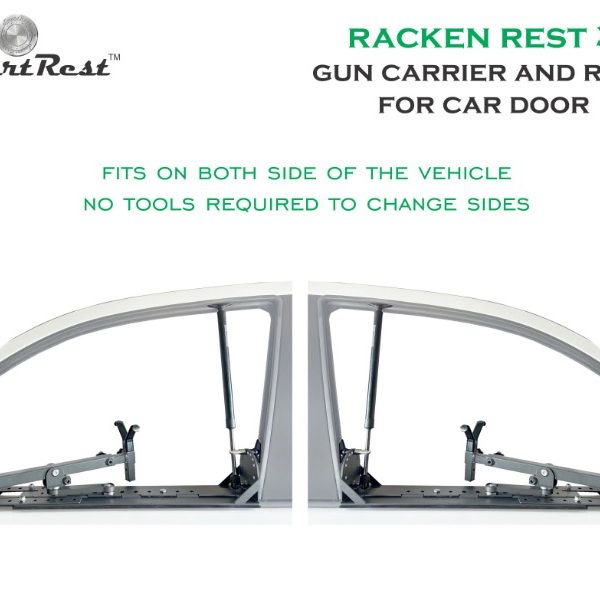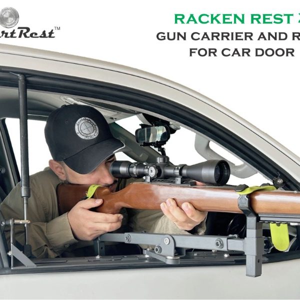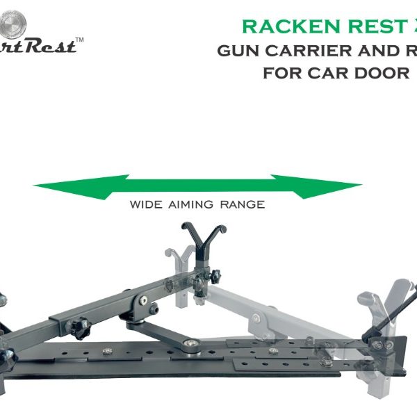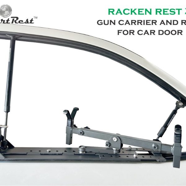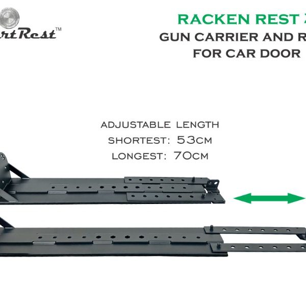 The Racken Rest 3 is an Australian designed gun rest designed to hold a rifle on a vehicle window sill while driving the vehicle. It can mount to either sides of a vehicle door. It is a UNIVERSAL model. Fits almost all car doors. The rest is capable of holding a rifle in place to keep the rifle firmly fixed in place. This means a shooter will not be required to repeatedly set up or remove a rifle every time he/she needs to take a shot. The mount has a swiveling capability for lateral and vertical movement. The tension controlled vertical and horizontal swiveling action has a range which is unmatched by any other rest ever developed for the doors of a vehicle. The arms are also telescopically adjustable for height and length to adjust for each rifle and shooter.
