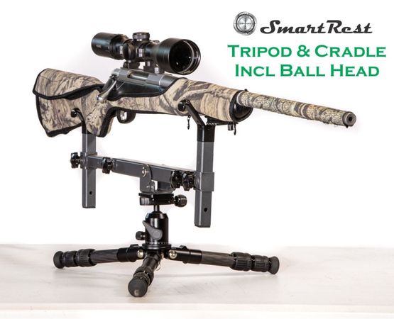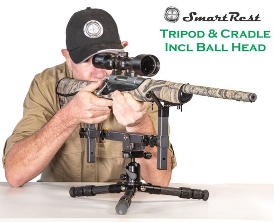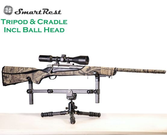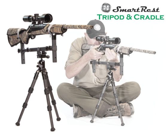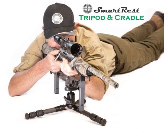 SmartRest Tripod and Cradle SRT02 is a bench rest and field rest combined. Utilizing light weight design and rock solid support this rest can be used anywhere. The Tripod and cradle can be used in prone, sitting and kneeling positions.