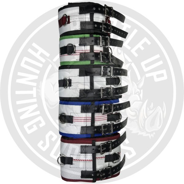 The collar features heavy-duty PVC strapping and dual metal buckles, ensuring a secure and adjustable fit that won’t loosen under pressure.