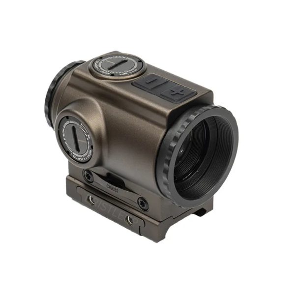 The 1x MICRO Prism Scope FDE is a compact solution combining the advantages of both red dot sights and traditional riflescopes. It features a 20mm objective lens and 13 brightness settings, including three for night vision, ensuring optimal visibility in most conditions. This optic is shockproof, waterproof, and fog-proof, equipped with a side-loading CR2032 battery offering up to 50,000 hours of operational life. The ocular and objective feature Tenebraex adapter geometry to facilitate 26FCV-010BK1 and 28MMFC-FCV Tactical Tough flip up lens covers, offering ultimate protection of the multi coated lenses. The integrated motion sensor with auto sleep and auto-on functionality conserves battery while keeping the scope ready for action. The fixed 1x magnification facilitates quick target acquisition, nearly as fast as red dot sights, while providing a refined reticle to enable precise shooting at extended ranges.