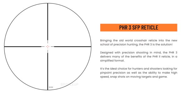 - PHR 3 SFP Reticle: A modern take on the classic crosshair, designed for precision, versatility and quick target acquisition.