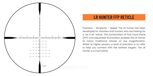 LR Hunter FFP Illuminated Reticle: Combines precision, simplicity and speed, ideal for hunting scenarios.