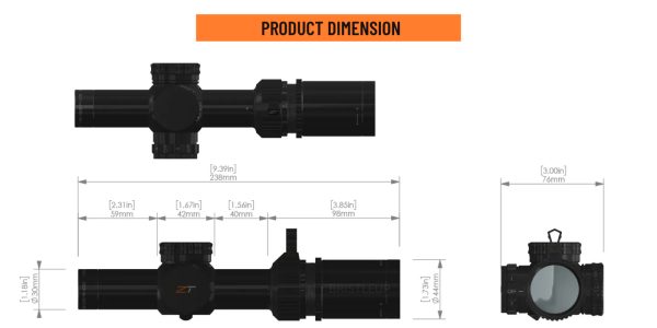 | Field Of View @100 Yards | Low: 106.93ft; High: 26.18ft |