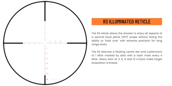 | Manual : 4-20x50MM R3 ILLUMINATED | Reticle Specs | Reticle Range Chart |